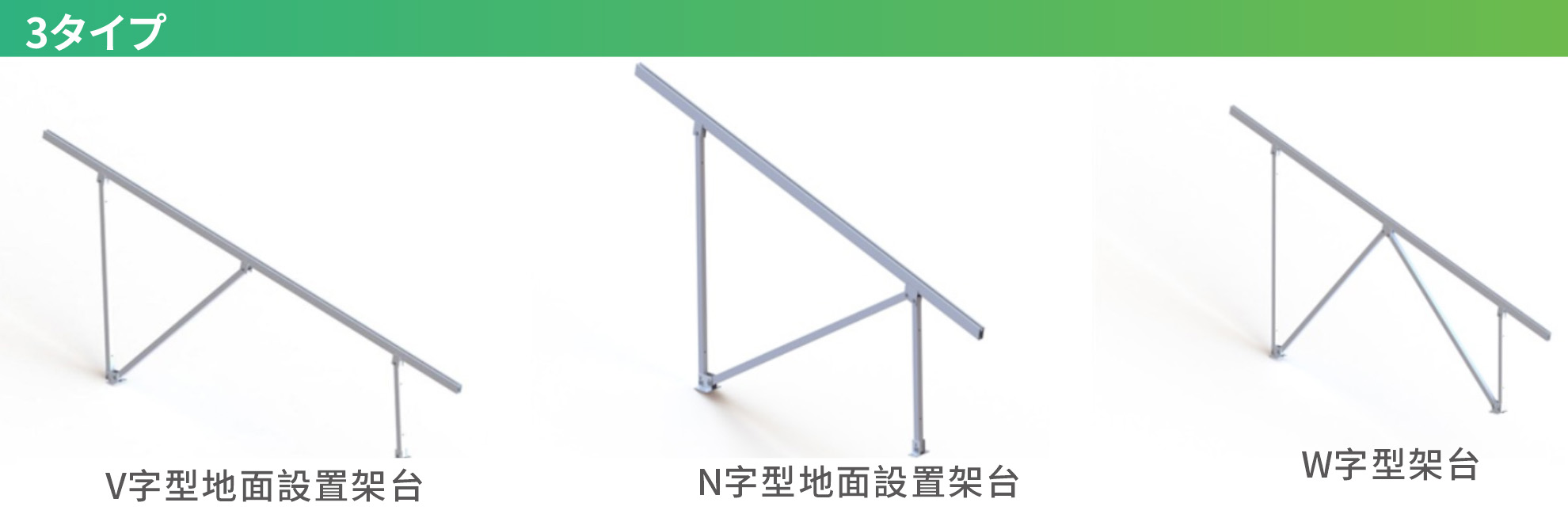Q:当社では、地上設置型太陽光発電架台を何種類取り扱っていますか?