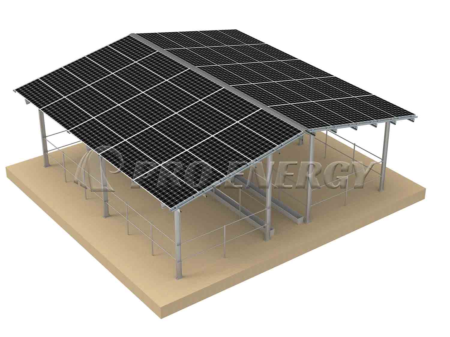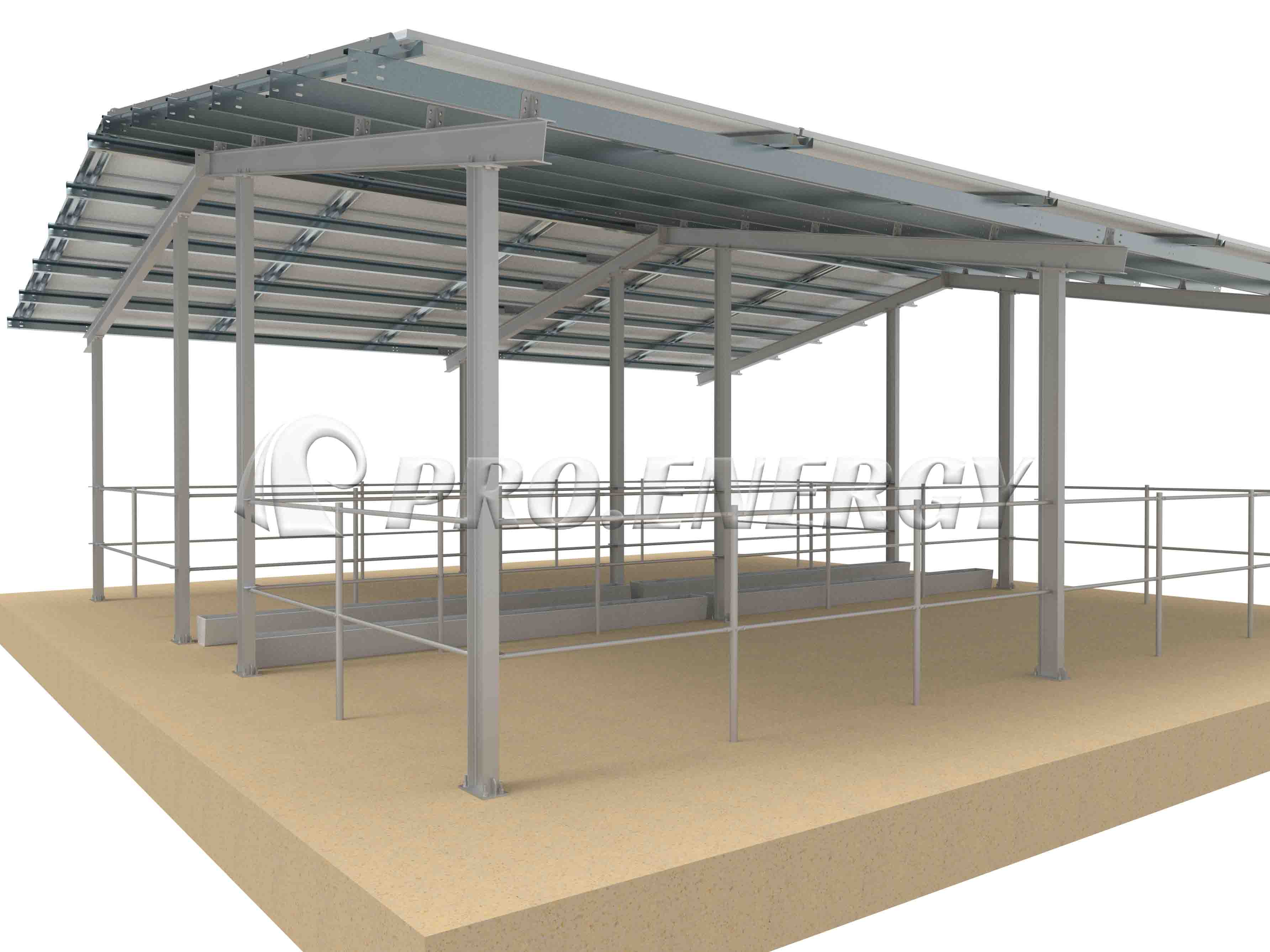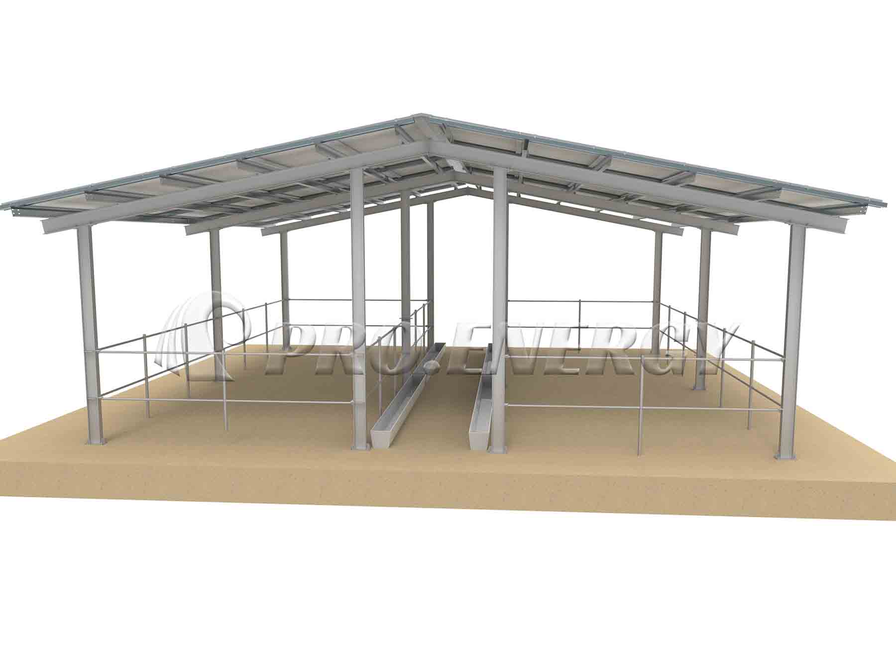 このTÜV認証取得済みの太陽光発電牛舎は、ユーロコード1およびDIN EN 1991構造基準に完全に準拠しています。主要フレームには高品質のQ355/Q235炭素鋼を使用し、溶融亜鉛めっき(≥80μm)またはZn-Al-Mg(ZAM)防錆処理が施されています。家畜用のオフグリッド太陽光発電システムとして設計されており、牛舎に再生可能エネルギー源を提供し、畜産農家に持続可能な電力供給を実現します。この構造は、最大0.8 kN/㎡の風圧と最大1.5 kN/㎡の積雪荷重に耐え、省エネ型の牛舎技術や畜産管理における太陽光発電の応用をサポートします。現場の地形に合わせてカスタマイズされているため、家畜の移動を妨げず、包括的な天候保護と低い運用コストを実現し、太陽光発電によって家畜の福祉を向上させる革新的な牛舎用太陽光発電ソリューションとして機能します。