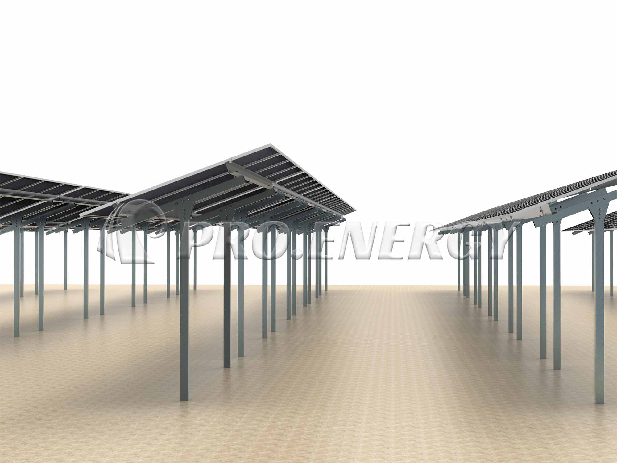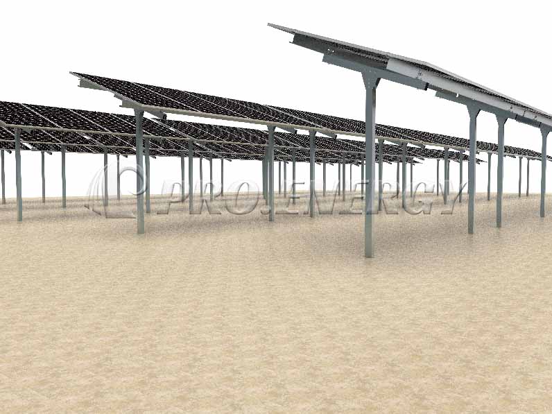 A:フレーム式および単柱式の農業用太陽光発電架台。あらゆる形状の構造物を提供可能です。