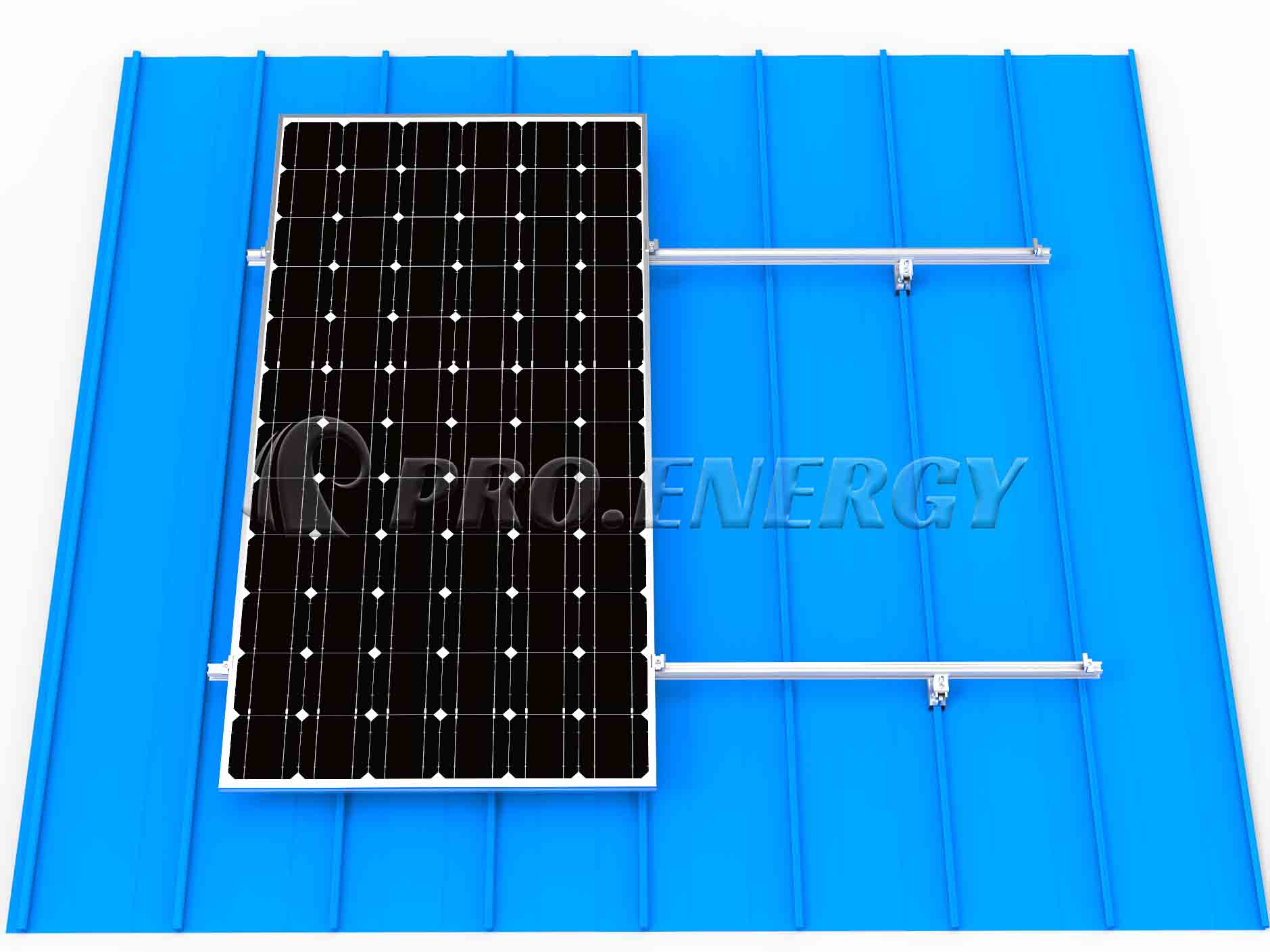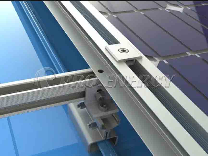 プロフェンス・エナジーが開発した金属製屋根レール取り付けシステムは、波形金属板屋根に適しています。軽量なアルミニウム合金素材を使用し、クランプで固定するため屋根を傷つける心配がありません。