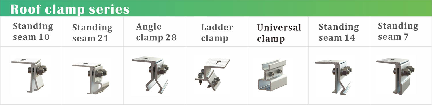 A:L字型脚システム、立ちはぜ式システム、ミニレールシステム、フックシステム、バラストシステム、BIPV防水システム、傾斜角度システム。
