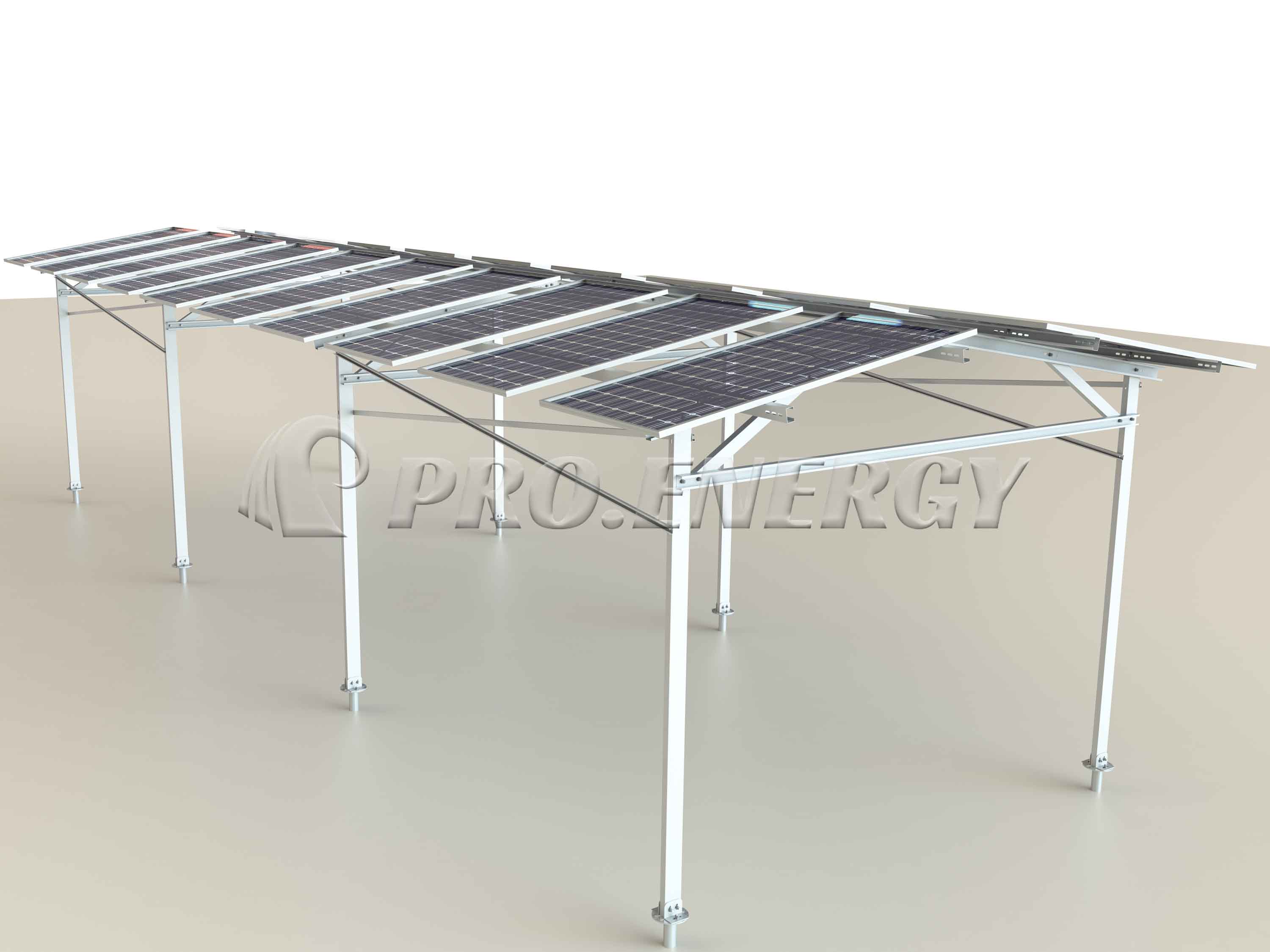 A:フレーム式および単柱式の農業用太陽光発電架台。あらゆる形状の構造物を提供可能です。